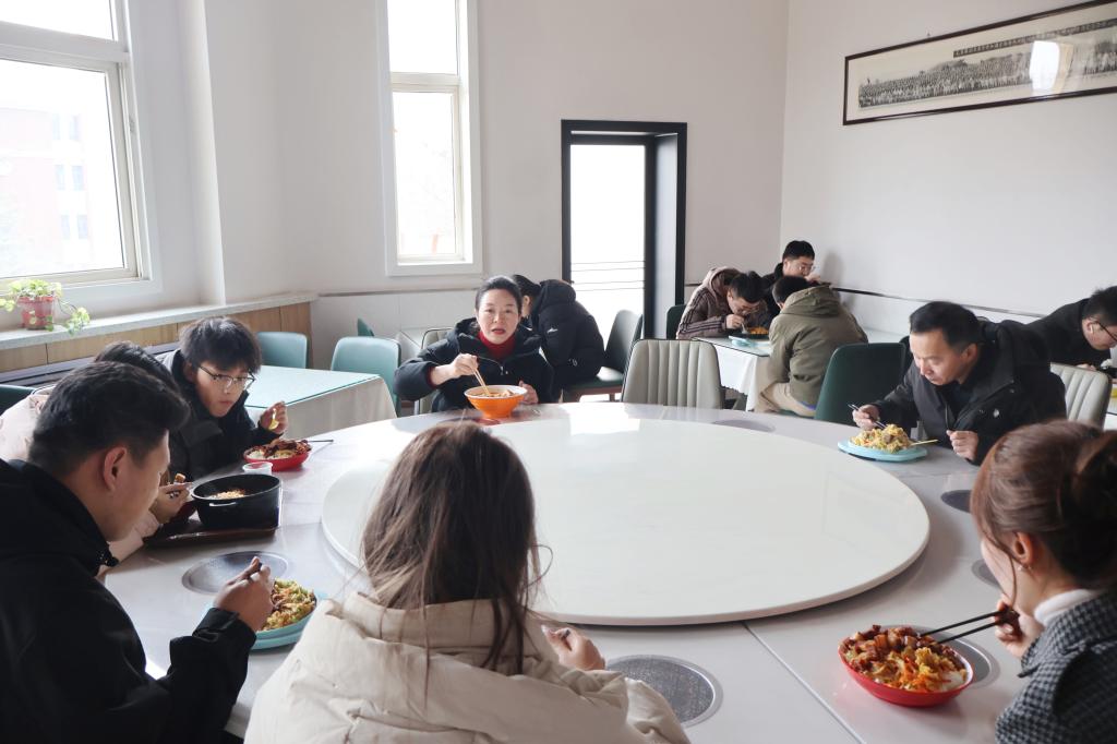 在朝阳餐厅,王珺与班级学生代表共进午餐,并在就餐过程中认真听取了学生们对就餐环境、餐饮质量、饭菜价格以及教学环境与设施等方面的意见和建议。她耐心倾听每一位同学的发言,并针对大家提出的问题表示,学校将高度重视并认真考虑,逐步进行改进,努力为大家创造更加优质的学习和生活环境。