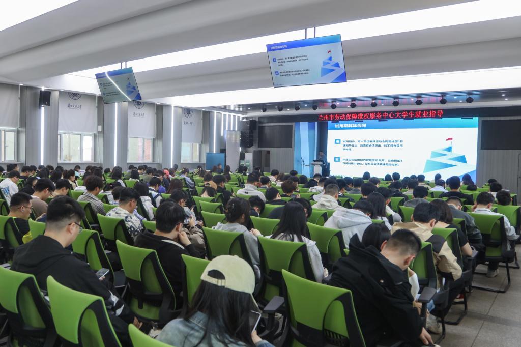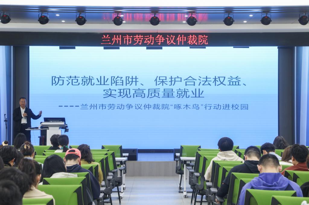 4月10日下午,兰州市劳动保障维权服务中心联合兰州市劳动人事争议仲裁院在我校开展高校毕业生劳动保障普法宣讲活动,活动以“兰州市劳动人事争议仲裁“啄木鸟”行动进校园”系列讲座方式进行。讲座分为《高校毕业生就业权益保护指南》与《防范就业陷阱、保护合法权益、实现高质量就业》两部分,吸引众多2025届毕业生到场聆听。