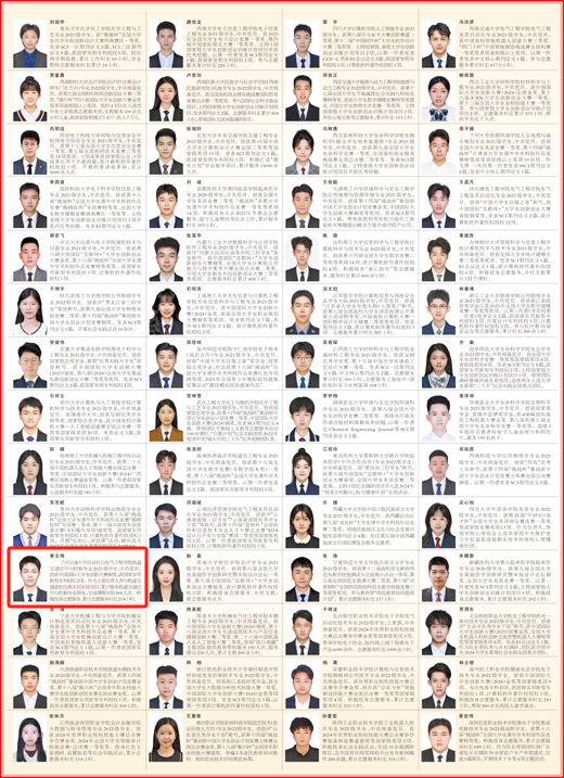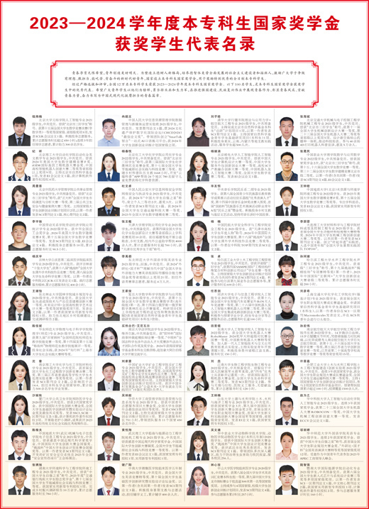 青年者,国家之栋梁,时代之先锋。在纪念“五四运动”106周年之际,5月4日,《人民日报》刊登《2023—2024学年度本专科生国家奖学金获奖学生代表名录》,我校自动化与电气工程学院2021级本科生黄文翔脱颖而出,荣耀上榜。