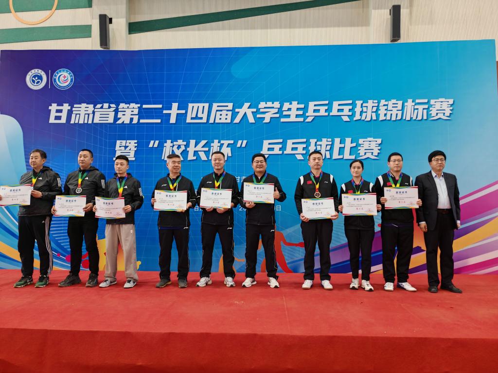 5月9日至11日,甘肃省第二十四届大学生乒乓球锦标赛暨“校长杯”比赛在甘肃卫生职业学院圆满落幕。来自全省35所高校的469名运动员参加比赛。在校工会和校体委统筹组织下,我校教职工及学生代表队出征,最终斩获2金2银1铜及多项优异成绩。