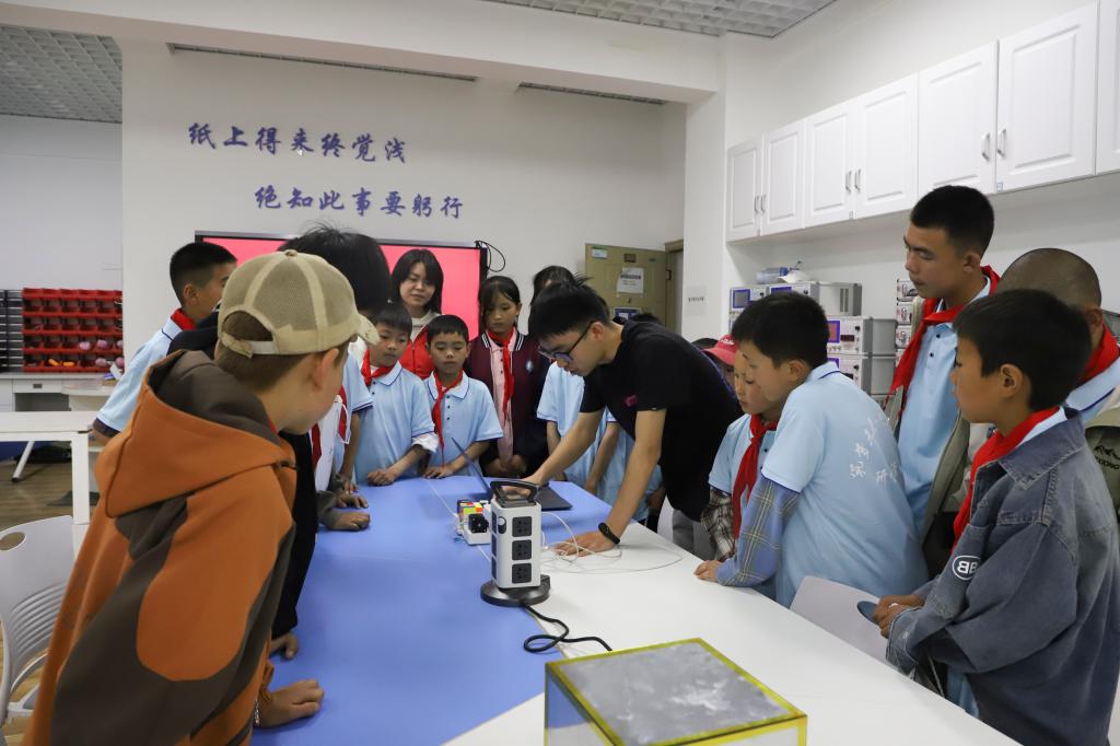 活动期间,校党委统战部负责人与学区师生进行了互动交流并为他们发放了民族政策知识宣传册。随后,研学师生参观了“青龙桥车站”及国家级电工电子实验教学示范中心。学校老师和大学生志愿者为同学们耐心讲解了我国铁路发展史和技术的发展,并带领他们体验了精心准备的各类实验项目,让同学们身临其境感受体验了科技之光。