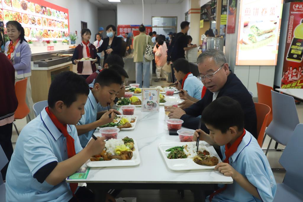 校党委副书记王爱平出席活动,与孩子们在食堂一起用餐共庆“六一”,并与学区师生亲切交流,仔细了解询问了村小学教育教学情况及孩子们的学习和日常生活情况。