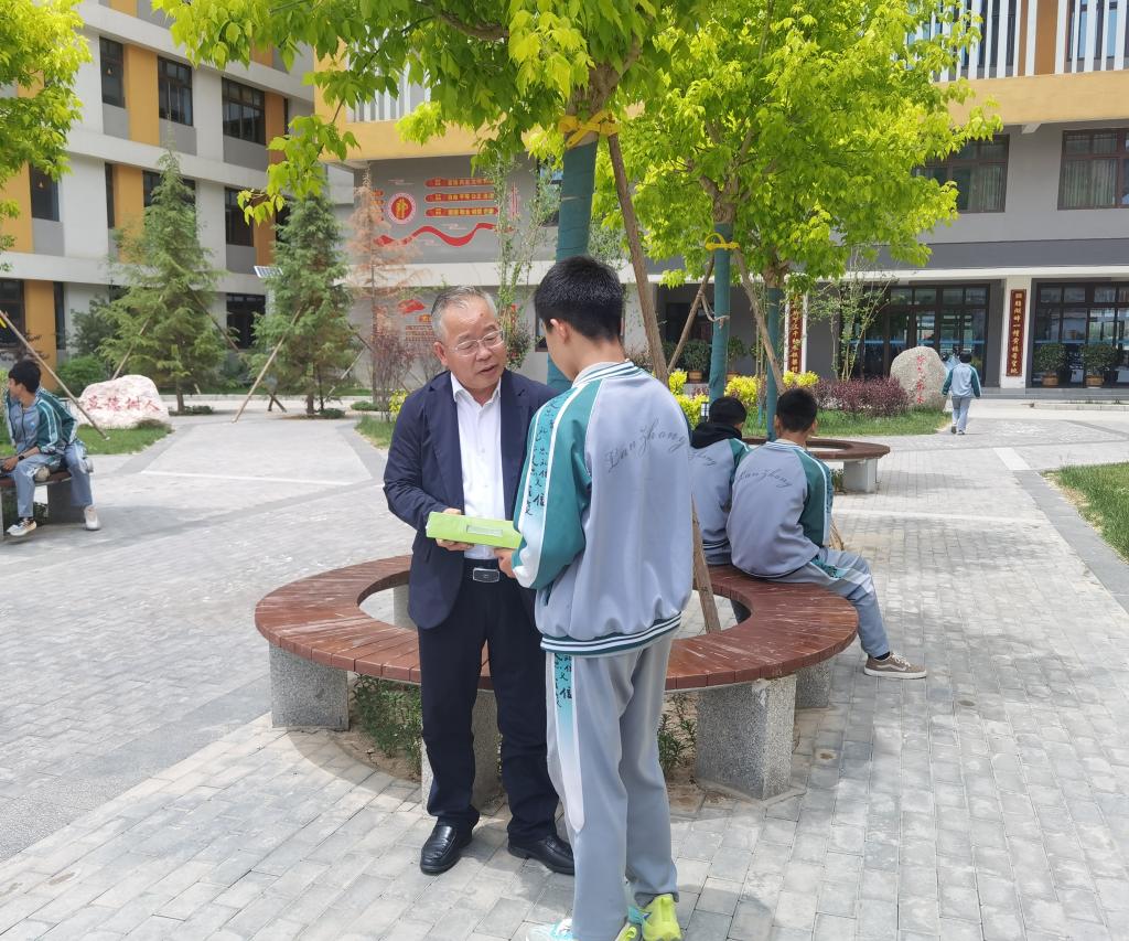 会后,王爱平前往蓝川中学走访了关爱对象马同学。王爱平与马同学进行了亲切交流,从学习生活和家庭情况等方面进行了细致入微的关心和了解,鼓励他要好好学习、快乐生活,还为他带去了一套“少年读史记系列图书”课外读物,嘱咐其多读书、健康成长、长大后报效祖国。