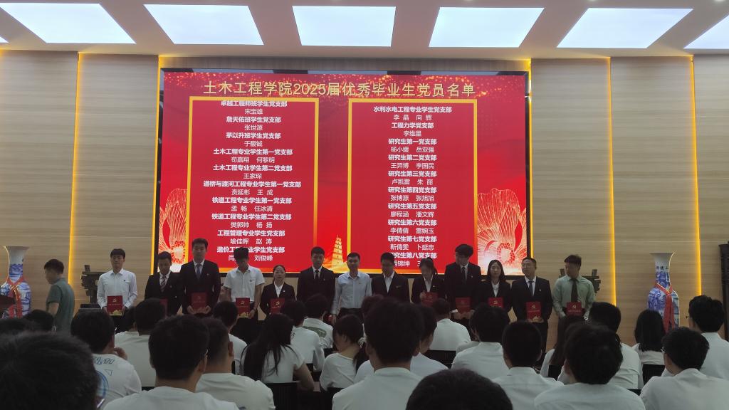 大会宣读了《土木工程学院关于表彰奖励2025届优秀毕业生党员的决定》。与会领导为获奖学生颁发了荣誉证书。