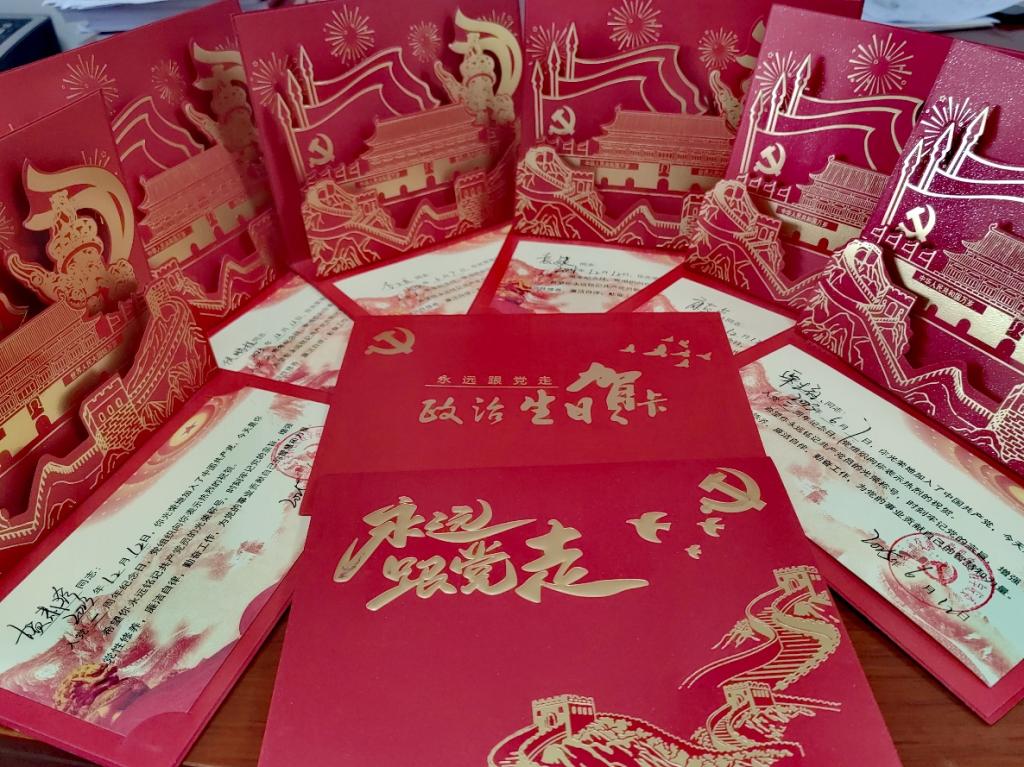 同过一次政治生日。加入党组织的那一天,是学生党员光荣的“政治生日”,标志着政治生命的启航。学院党委特别定制了“永远跟党走”政治生日纪念卡,卡上写有党员姓名、入党时间及党龄,这张卡片,不仅是对大家过去表现的肯定,更是激励大家不忘初心、牢记使命、永葆先进性的重要载体。各学生支部书记为本支部的毕业生党员一一颁发政治生日贺卡。政治生日是党员政治生命的开端,承载着信仰的烙印,一张张党员政治生日贺卡,传递的不仅仅是温情与关爱,更包含着期望与责任。