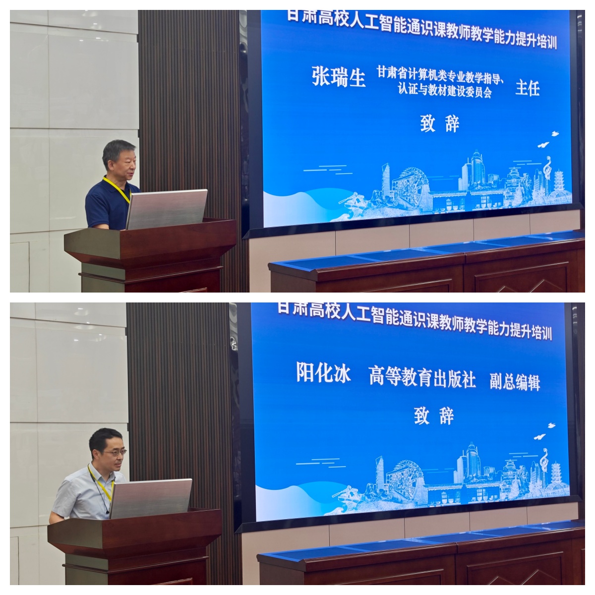 甘肃省计算机教指委主任张瑞生在讲话中指出,人工智能通识课程是新时代高等教育改革的重要抓手,希望广大教师积极参与课程建设,提升教学质量。高等教育出版社副总编辑阳化冰表示,将一如既往支持西部教育发展,提供优质的教学资源和服务。