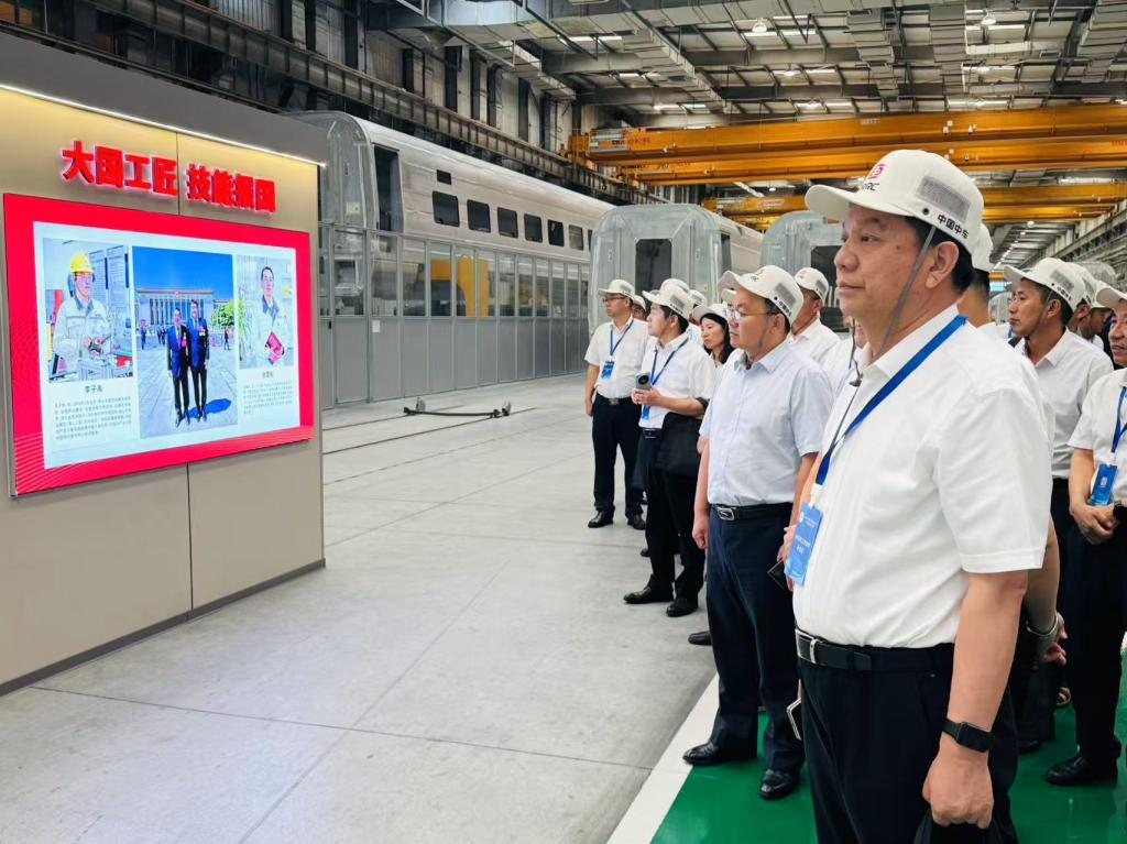 7月29日下午,朱廷珺参加了共同体组织的集中参观活动,参观了中车唐山公司的文化展厅、车体事业部、组装事业部、工程实验中心和综合检测中心,倾听了党的十九大代表、全国劳动模范、国家级技能大师张雪松关于工作室的建设情况;参观了中车唐山公司数字产业园,听取了公司产教融合共同体建设的理念、目标、措施和校企合作进展情况,详细了解了校企合作开发的有关教学装备、课程资源、教材等成果。通过近距离参观生产线和技术创新实验室,沉浸式感受到了当今我国轨道交通的先进智能制造技术及领先研发水平,深刻领略到了“大国重器”的魅力。