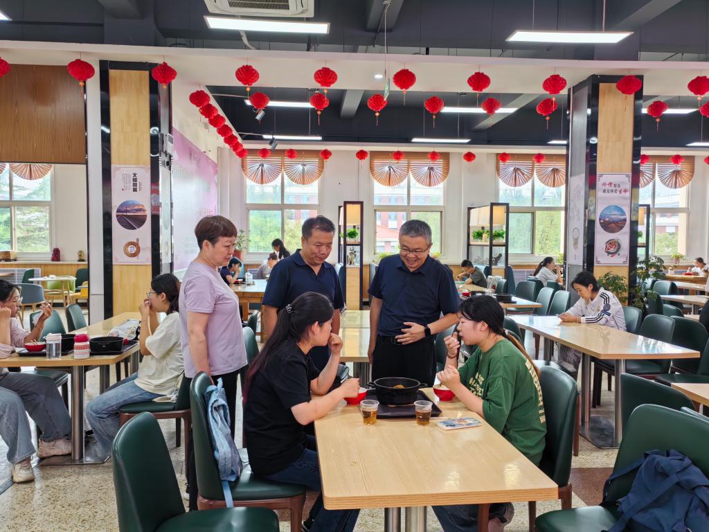 在就餐区,张弢与正在就餐的同学亲切交谈,细致询问他们对食堂饭菜种类、质量、口味、价格及服务的实际需求,认真听取学生关于菜品创新、窗口设置及食品安全监督的意见建议,并现场指示相关负责人对合理诉求逐项落实整改。
