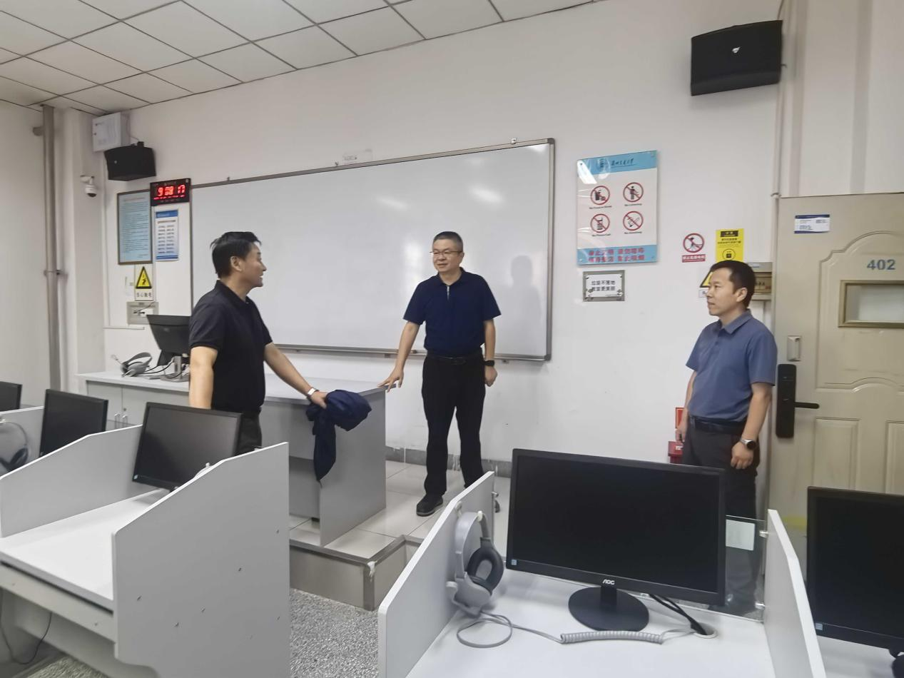随后,张弢实地检查了学院语音室教学设施设备情况,要求学院充分利用现有资源,同时积极争取各方支持,进一步完善实验室设备、图书资料等教学设施,为教学工作提供更加有力保障。