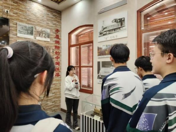 实验室探秘后,师生们走进天佑铁路展览馆,在老照片与机车模型间追溯我国铁路发展脉络。从蒸汽机车的斑驳零件到高铁模型的流线造型,展品串联起我国铁路从追赶到引领的奋斗历程,讲解员结合展品讲述的铁路建设者创新故事,让科学精神的传承变得鲜活立体。
