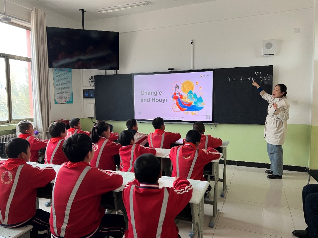 在教学互动环节,民建交大支部会员、外国语学院教师王文佳博士为三至六年级学生上了一堂特色英语课。课程以“趣味驱动、读写并进” 为理念,融合外语学习与文化传承。学生们精神饱满、积极参与,课堂氛围热烈,教学效果显著。