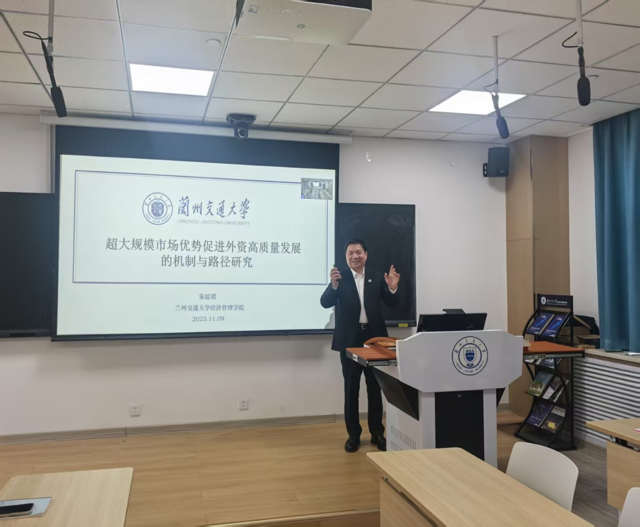 为深入贯彻创新驱动发展战略,推动经济学学科高质量科研成果产出,11月9日,经济管理学院成功举办“超大规模市场优势与外资高质量发展”学术研讨会。会议聚焦我国超大规模市场新阶段特征与外资高质量发展的理论与实践命题,汇聚多位知名学者,共同探讨相关领域的最新研究成果与未来发展方向。兰州交通大学党委常委、副校长朱廷珺出席报告会,学院教师和部分研究生参加了会议。