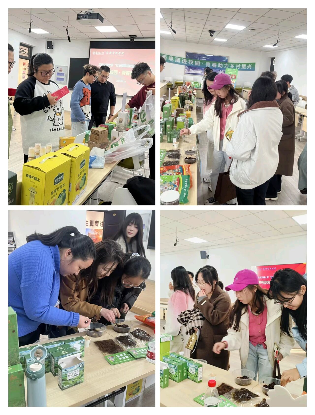 在品尝特产环节,师生们近距离体验陇南特色产品,参与直播带货实践。展厅内陈列的农特产品与互动式直播,让师生直观感受“大山深处的暖意”。通过现场试吃、直播互动等环节,消费帮扶理念深入人心,师生们用实际行动为乡村振兴增添一份青春温度。展厅成为连接校园与乡村的桥梁,展现了电商助农的生动实践。