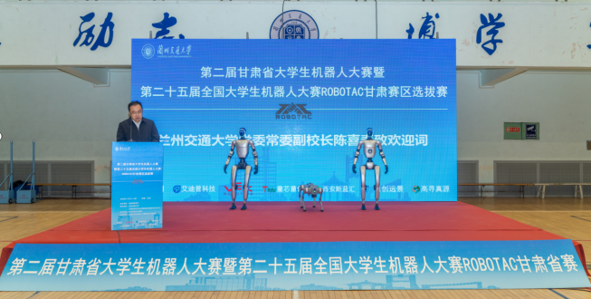 陈喜春代表学校向参赛选手与指导教师表示热烈欢迎,并简要介绍了兰州交通大学的办学历史、学校特色、学科建设等情况。陈喜春指出,要加强人工智能、大数据、物联网等新一代信息技术与机器人前沿科学技术的融合提升,促进机器人产业创新发展;要密切关注我国机器人领域技术突破与产业发展态势,将大赛作为落实新工科建设、培养学生创新能力的重要平台,以赛事促进高校交流,拓宽创新视野,跟踪学科前沿,把创新创业教育融入高质量人才培养过程中,选拔优秀人才,助力甘肃乃至全国机器人教育与产业协同发展。