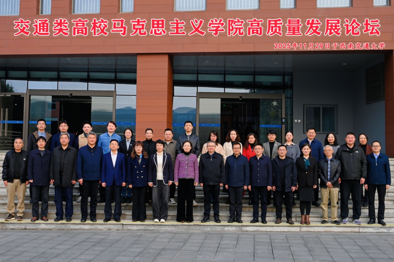 11月28日至30日,由西南交通大学主办、西南交通大学马克思主义学院承办的“交通院校马克思主义理论学科发展论坛”在西南交通大学犀浦校区隆重召开,来自全国13所交通类高校马克思主义学院的领导参加论坛。本次论坛以“交通院校马克思主义理论学科建设与发展”为核心主题,聚焦交通特色思政课程体系构建、交通行业科学家精神融入思政课教学、马学科建设路径创新及校际协同共建机制等关键议题,旨在深入学习贯彻习近平新时代中国特色社会主义思想和党的二十届四中全会精神,落实立德树人根本任务,服务交通强国战略与铁路事业高质量发展。