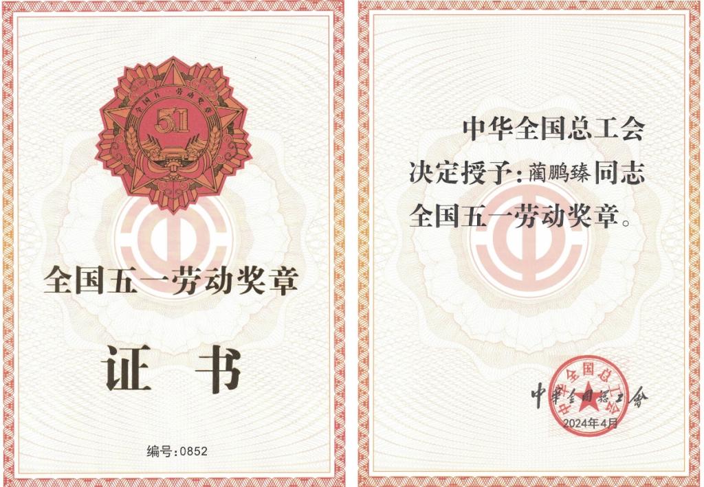 蔺鹏臻教授获全国“五一劳动奖章”