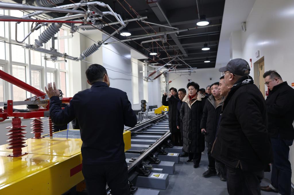 随后,委员们调研了甘肃省轨道交通研究中心。该中心设立铁路编组站综合管控自动化系统、铁路运输全息智慧互动系统、铁路数智货运综合平台、高速铁路综合调度平台、城市综合交通控制研究平台、列车自主运行控制平台、源网车储新型轨道牵引供电中心等多个先进研究平台。中心聚焦破解西部复杂环境下的轨道交通关键技术,致力于解决特殊地质轨道结构耐久性、高原环境下车辆系统可靠性、复杂工况智能决策系统及构建全生命周期风险预警等四大核心领域的瓶颈问题,为轨道交通建设与运维提供科技支撑。