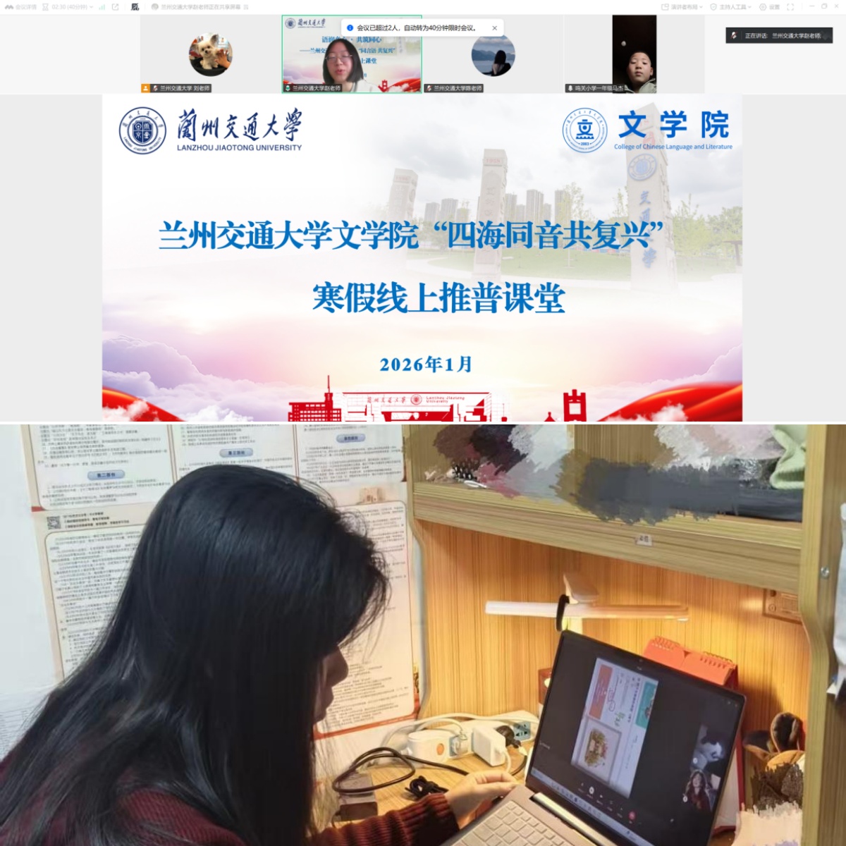 为深入贯彻落实习近平总书记关于“推广普及国家通用语言文字”的重要指示精神,铸牢中华民族共同体意识,文学院于2026年1月至2月期间依托学科优势,面向甘肃省康乐县鸣鹿学区各民族小学生,成功举办“四海同音共复兴”线上推普课堂。推普课程采用“主题+语言+文化、美育、心理”多元融合模式,将普通话推广与爱国主义教育、民族团结进步教育、中华优秀传统文化传承和心理健康关心关爱等有机结合,切实发挥普通话作为连接民族地区青少年与中华文化的桥梁纽带作用。