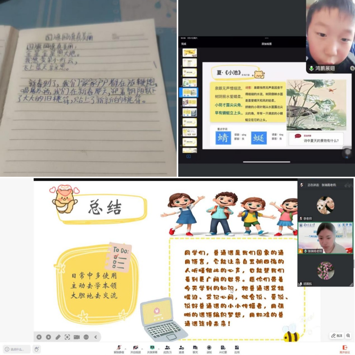 本次“四海同音共复兴”寒假线上推普课堂是文学院继暑期推普社会实践、秋季学期线上课程之后的重要举措,更是深化“铸牢中华民族共同体意识”与“推普助力乡村振兴”双融双促的生动实践,持续构建起“全年不断线、假期有延伸”的常态化推普机制。截至目前,系列线上课程累计授课160余节,时长超过4800分钟,各类推普课程惠及鸣鹿学区不同年级的各民族小学生100余人,共设计完成标准化课程包10套、教学PPT课件10份、配套学习资源包20个,并整理汇编学生语音作品、课堂反馈及教学反思等过程性材料,初步建立起可复用、可推广的线上推普教学资源库。