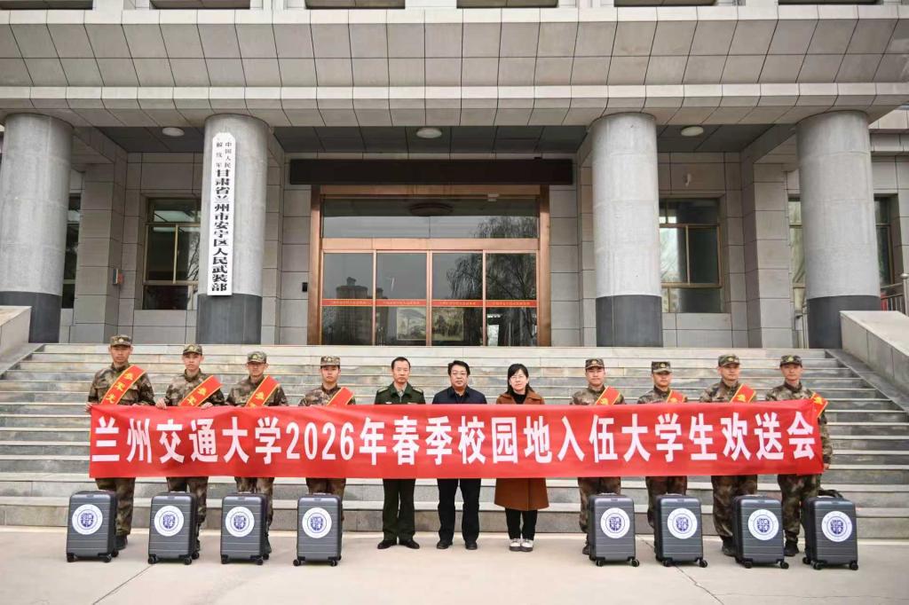 为进一步做好2026年度大学生征兵工作,激励即将奔赴军营的大学生坚定从军意志、投身强军实践,3月13日,学校在安宁区人民武装部举行2026年春季应征入伍大学生新兵欢送仪式。安宁区人民武装部上校政治委员王荣淇,学校党委学生工作部(武装部)相关工作人员及全体春季入伍新兵共同参加欢送活动。