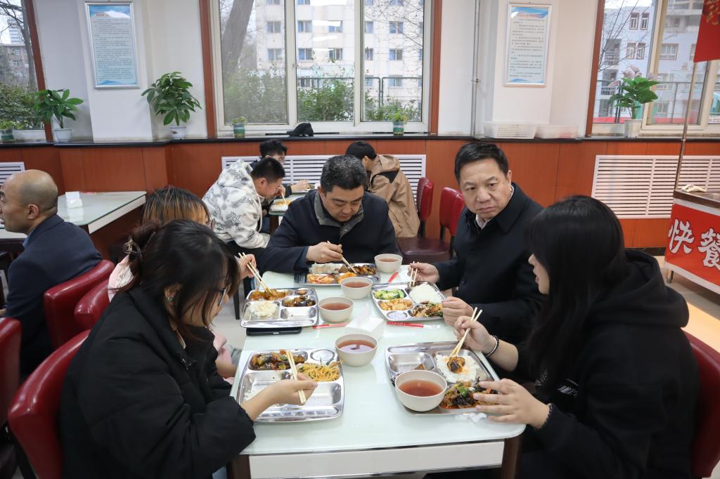 傍晚,朱廷珺一行来到学生食堂,与同学们一起用餐。他边吃边聊,认真听取大家对饭菜价格、口味等方面的意见,并鼓励同学们养成健康的饮食习惯。