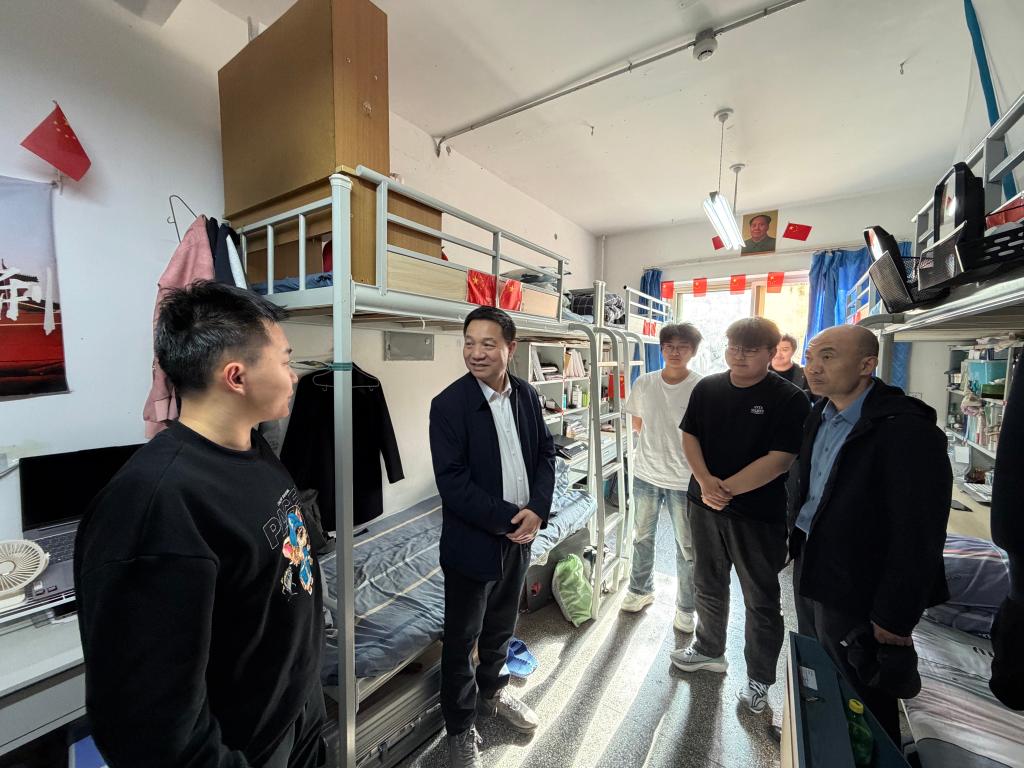 朱廷珺一行实地查看了学生宿舍、餐厅、学院办公楼等重点区域,重点对消防安全设施配备与完好情况、用电用气规范、应急疏散通道畅通性等关键环节进行了细致排查。检查中,朱廷珺认真听取了铁道技术学院关于安全工作日常管理、隐患排查整治及清明节假期安全防范措施的汇报,详细了解学院在安全责任落实、师生安全教育等方面的工作开展情况。