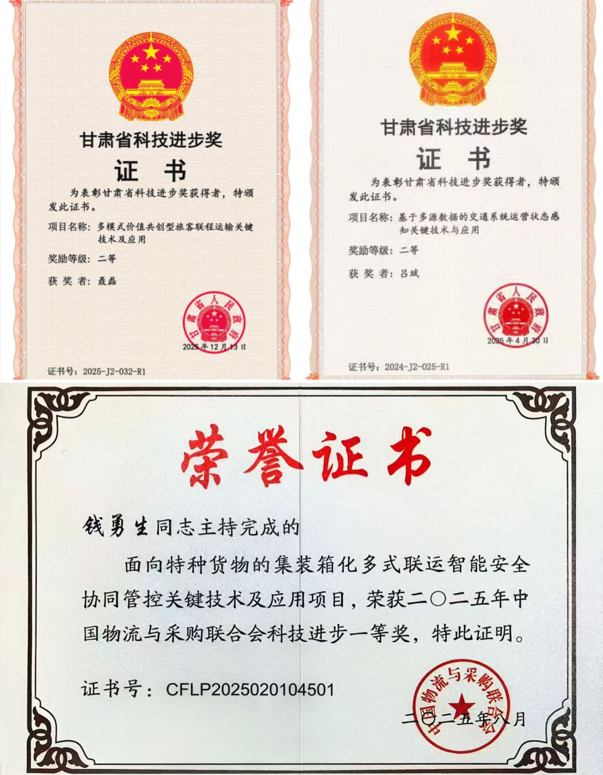科研创新能力持续提升,形成“基础研究-技术攻关-工程应用”三位一体创新链条,聚焦交通运输规划与管理、交通信息工程及控制、智慧物流、高原交通安全等特色研究方向,取得一系列标志性成果。“十四五”期间发表学术论文1000余篇(SCI、EI收录600余篇),出版专著11部,获授权专利93项(其中国家发明专利49项),10项资政报告获省政府采纳,获甘肃省科技进步奖二等奖2项,获2025年度中国物流采购联合会科技进步奖一等奖1项,二等奖1项,三等奖1项。