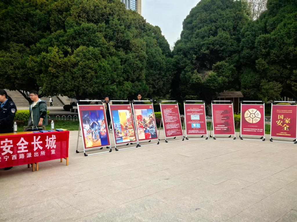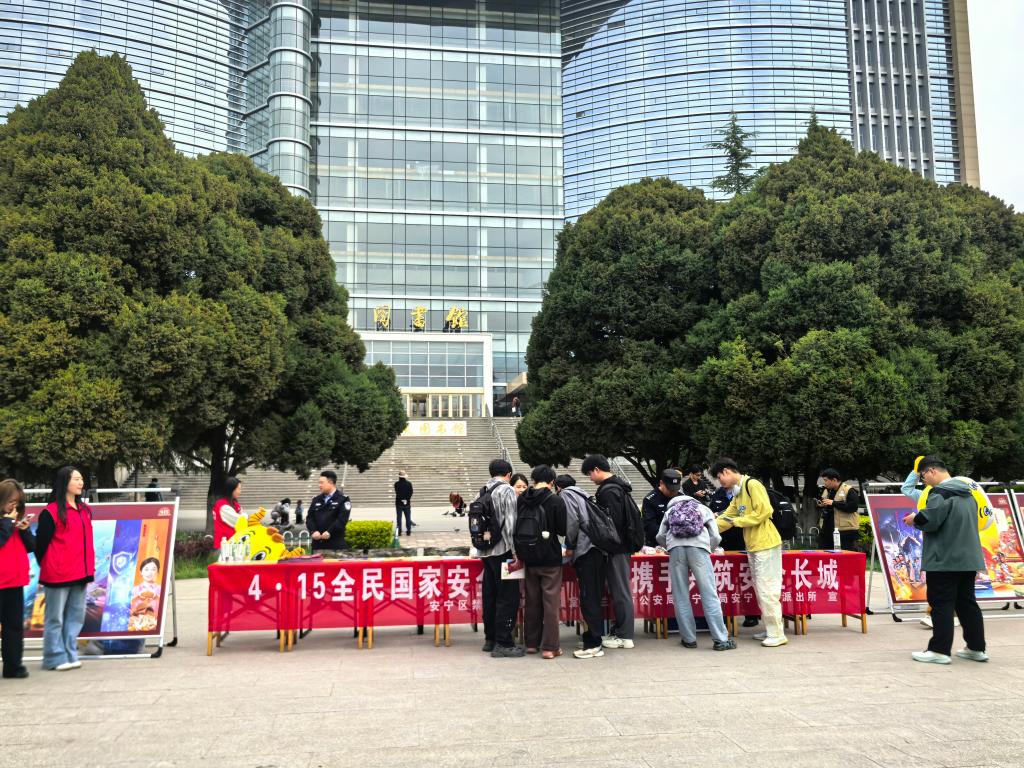 在第十一个全民国家安全教育日到来之际,为深入贯彻总体国家安全观,切实增强师生国家安全意识与国防观念,4月15日,由学生工作部(处)、党委人民武装部联合党委保卫工作部、安宁区禁毒委员会办公室、安宁西路派出所共同主办的“全民国家安全教育日”主题展览在学校图书馆前中心广场举行。