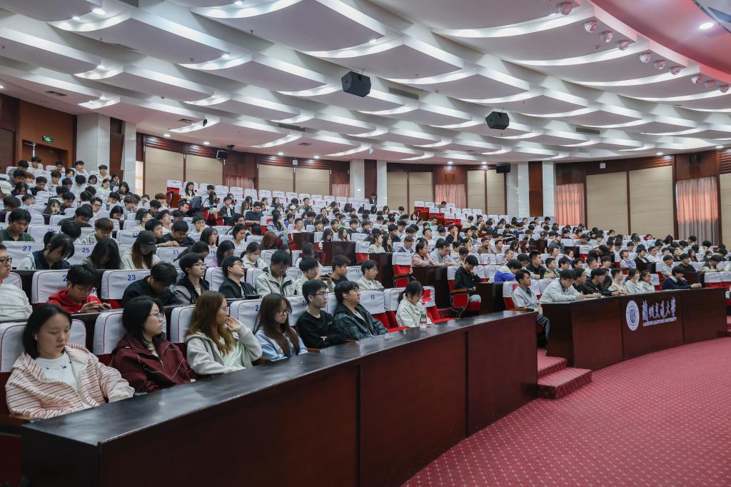 为深入学习贯彻习近平新时代中国特色社会主义思想,持续深化青年思想政治引领,引导广大团员青年从甘肃红色历史中汲取奋进力量,4月16日,由党委宣传部、校团委主办的本学期第二期“天佑大讲堂”在尚德楼三楼大型报告厅举行。本次讲座特邀八路军兰州办事处纪念馆宣传教育和研究部主任、副研究馆员,全国革命文物百佳讲述人、全国红色旅游五好讲解员潘洁作专题报告。校团委全体成员、各学院团委书记、青马班全体学员、第28届研究生支教团全体成员、校级学生组织干部及各学院学生代表共计300余人参加了本次讲座。