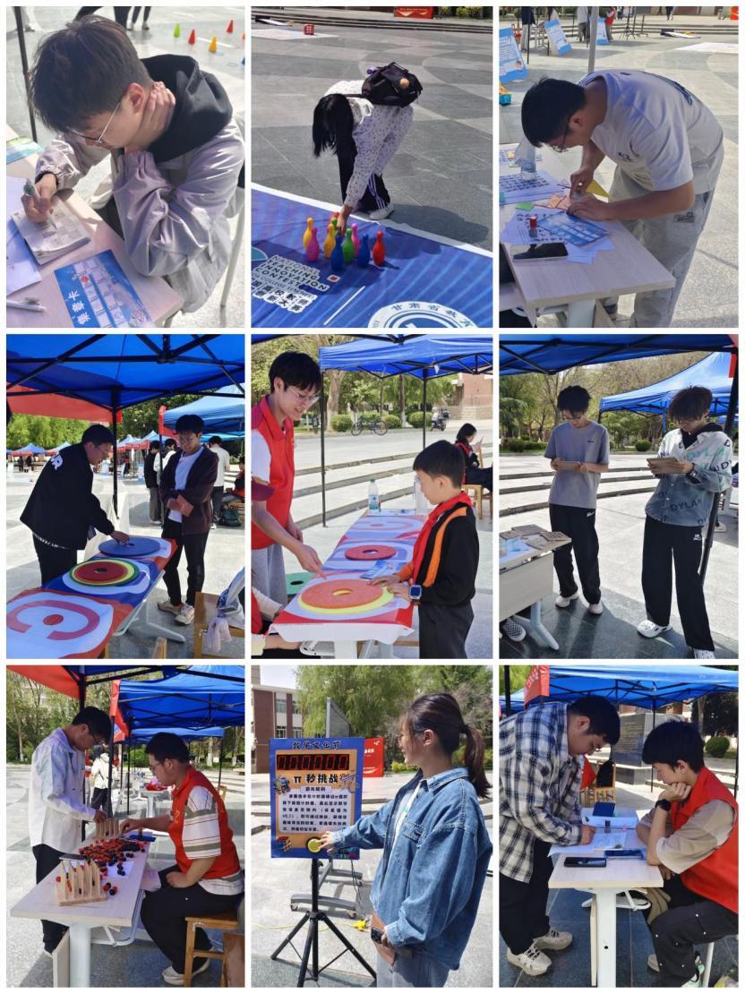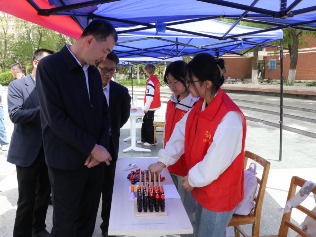 开幕式结束后,与会领导与师生一同参与趣味集章打卡活动。活动现场共设12 个特色打卡点,“智拼几何”“玩转汉诺塔”“数字华容道” 等益智项目妙趣横生,吸引同学们踊跃参与、争相体验。在数学手工坊,大家亲手制作莫比乌斯环、数学主题立体书,在动手实践中直观感受数学的精巧与美感;竞赛咨询台前,学子们积极咨询各类数学赛事详情,交流备战心得;心愿树上贴满了同学们的学习目标与青春愿景,整个现场气氛热烈、秩序井然。